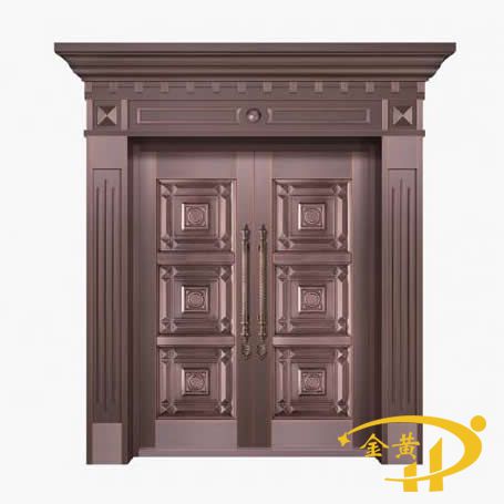 本款別墅純銅對(duì)開門,型號(hào)是M-9082,門面采用整板模壓工藝,原材料為洛陽純紫銅或黃銅制作而成。